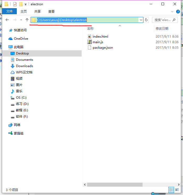 新建一个文件夹,命名为electron,在文件夹目录下,创建三个文件,package.json,main.js,index.html