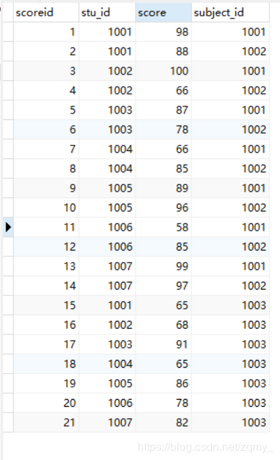 (select sc.stu_id,sc.score from score sc where sc.subject_id=1001) a1