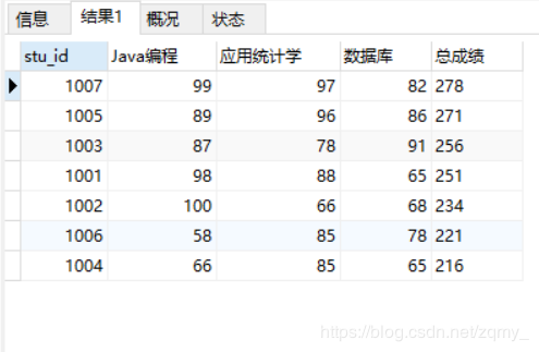 3.一共有三门课程,分别获取这三门课程的学生成绩表然后和学生总成绩表联合按总成绩进行降序排列得到一张新表