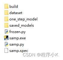 执行完毕会发现生成了 3 个文件夹:dist,build,samp.spec文件